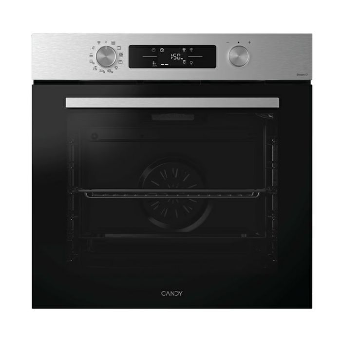 Candy CA6 N5B3EYTX Ugradbena pećnica Inox (inox gumbi + inox ručka) 78 l zapremina XL Touch display - automatsko isključivanje MULTILEVEL tehnologija - pečenje na više razina EasySteam 13 funkcija + WiFi Teleskopske vodilice Stražnji grijač Sustav čišćenja: piroliza + hidroliza Ventilator za hlađenje stjenki pećnice 2 rešetke + 1 pladanj A++ klasa energetske učinkovitosti Vrata - 4 stakla Dimenzije (VxŠxD): 59,5 x 59,5 x 54,8 cm