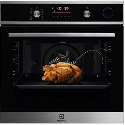 Višefunkcijska parna pećnica Funkcije pečenja: donji grijač, roštilj, roštilj + donji grijač, roštilj+donji grijač+ventilator, roštilj+ventilator, kružni grijač+ventilator, para+vrući zrak+donji grijač+ventilator, para+vrući zrak+ventilator Opcija brzog zagrijavanja Sonda za pečenje Automatski prijedlog temperature Sigurnosno zaključavanje za zaštitu djecu sprečava slučajno uključivanje uređaja. Plitice isporučene s pećnicom: 1 siva emajlirana plitica za kolače, 1 siva emajlirana plitica za skupljanje masnoća Neto veličina unutrašnjosti, l: 72 Razina buke, dB(A): 45 Dimenzije za ugradnju: 600x560x550 Boja: inox Preporučena energetska klasa: A Maksimalna priključna snaga, W: 3480 Zemja porijekla: Italija