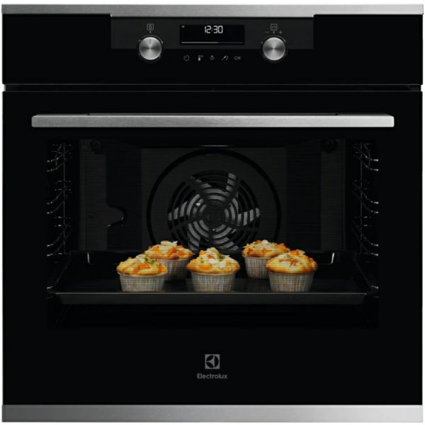 Funkcije pečenja: donji grijač, roštilj, roštilj + donji grijač, roštilj+donji grijač+ventilator, roštilj+ventilator, kružni grijač+donji grijač+ventilator, kružni grijač+ventilator, Ring + fan + evaporator Opcija brzog zagrijavanja Sonda za pečenje Automatski prijedlog temperature Sigurnosno zaključavanje za zaštitu djecu sprečava slučajno uključivanje uređaja Plitice isporučene s pećnicom: 1 siva emajlirana plitica za kolače, 1 siva emajlirana plitica za skupljanje masnoća Neto veličina unutrašnjosti, l: 72 Razina buke, dB(A): 45 Dimenzije za ugradnju: 600x560x550 Boja: inox Preporučena energetska klasa: A