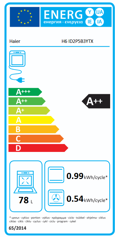 Klasa energetske učinkovitosti: A++ Potrošnja energije - uobičajen način rada (kWh): 0,99 Potrošnja energije - način rada uz ventilator (kWh): 0,54 Boja: Inox Softclose - nježno zatvaranje vrata Broj funkcija: 12 Napredno upravljanje na daljinu i dodatni sadržaj (Wi-Fi + BLUETOOTH®) Aplikacija za pametno upravljanje: hOn Vodilice: Žičane Pladnjevi: 1 x 40mm Rešetke: 1 Sustav čišćenja: Piroliza + Hidroliza Kapacitet pećnice (l): 78 Vrsta pećnice (metoda pečenja): Pečenje na više razina Dimenzije ugradnog prostora (mm): 590x560x560 Visina (mm): 595 Širina (mm): 595 Dubina (mm): 568 Neto težina (kg): 36,65