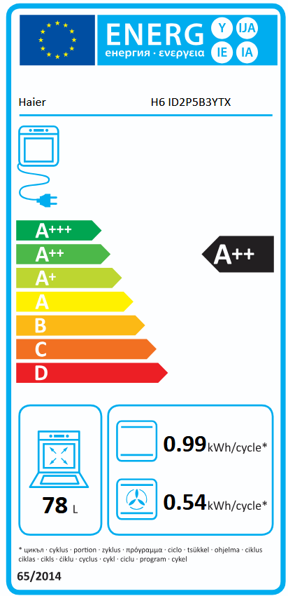 Klasa energetske učinkovitosti: A++ Potrošnja energije - uobičajen način rada (kWh): 0,99 Potrošnja energije - način rada uz ventilator (kWh): 0,54 Boja: Inox Softclose - nježno zatvaranje vrata Broj funkcija: 12 Napredno upravljanje na daljinu i dodatni sadržaj (Wi-Fi + BLUETOOTH®) Aplikacija za pametno upravljanje: hOn Vodilice: Žičane Pladnjevi: 1 x 40mm Rešetke: 1 Sustav čišćenja: Piroliza + Hidroliza Kapacitet pećnice (l): 78 Dimenzije ugradnog prostora (mm): 590x560x560 Visina (mm): 595 Širina (mm): 595 Dubina (mm): 568 Neto težina (kg): 36,65