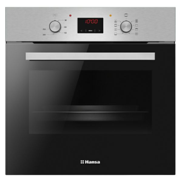 Hansa BOEI68491 Električna pećnica sa 8 funkcija Programator Displej Konvekcija Brzo zagrijavanje Odmrzavanje Broj plehova: 1 Sustav lakog čišćenja vrata Broj stakala na vratima: 3 Reflektirajuće staklo Grill Standardne tipke Ventilator Recepti na vratima Kapacitet pećnice: 65 l Energetski razred: A Dimenzije: 595 x 595 x 575 mm Boja: inox