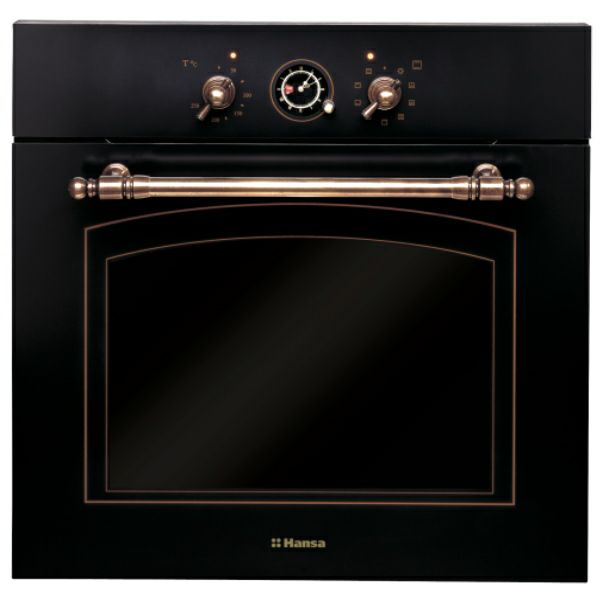 Hansa BOES68269 Retro električna pećnica sa 9 funkcija Programator Konvekcija Brzo zagrijavanje Odmrzavanje Lakočisteći emajl Broj stakala na vratima: 3 Ventilator Recepti na vratima Kapacitet pećnice: 62 l Energetski razred: A Dimenzije: 595 x 595 x 575 mm Boja: retro crna
