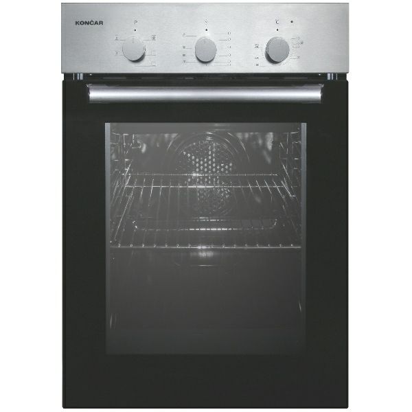 UPO 60 NI Pećnica Končar Boja: crna/inox Visina/ Širina/ Dubina (vanjska mjera): 59,6/45/57 cm Izvedba pećnice: električna Rasvjeta pećnice Snaga gornjeg grijača: 0,8kW Snaga donjeg grijača: 1 kW Površinska obrada: lakočisteći emajl Rešetkaste vodilice tava Rešetka: 1 Duboka tava: 1 Tangencijalni ventilator za hlađenje okoline pećnice Električni priključak: 1N Napon: 230 V~ Ukupna priključna snaga: 1,9 kW Razred energetske učinkovitosti: A Potrošnja energije - klasični način grijanja: 0,80 kW Potrošnja energije - grijanje s prisilnim kruženjem zraka: 0,80 kW Veličina prostora za pečenje: srednja Korisni volumen prostora za pečenje: 51 l PAKIRANJEDimenzije zapakiranog proizvoda: 66/50/66 cm Masa aparata neto/bruto: 18/20 kg Zemlja porijekla: Turska