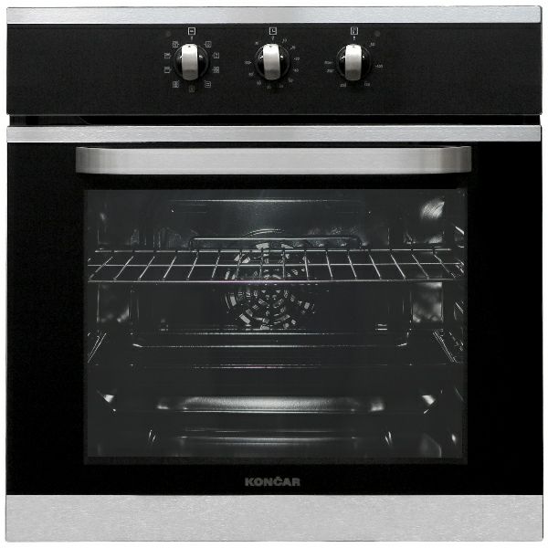 UPV659TV Pećnica Končar Boja: crna/inox Visina/Širina/Dubina (vanjska mjera): 59,5/59,5/55 cm Visina/Širina/Dubina (unutarnja mjera): 34/45/39 cm Broj funkcija: 9 Rasvjeta pećnice Snaga gornjeg grijača: 1,2 kW Snaga donjeg grijača: 1,1 kW Snaga infra grijača: 1,4 kW Snaga kružnog grijača: 2 kW Površinska obrada: lakočisteći emajl Vučene vodilice tava Rešetka Duboka tava Signalni sat Tangencijalni ventilator za hlađenje okoline pećnice Električni priključak: 1N Napon: 230 V~ Ukupna priključna snaga: 3,1 kW Razred energetske učinkovitosti: A Potrošnja energije – klasični način grijanja: 0,86 kWh Potrošnja energije – grijanje s prisilnim kruženjem zraka: 0,78 kWh Korisni volumen prostora za pečenje: 65 l Dimenzije zapakiranog proizvoda: 68/63/64 cm Masa aparata neto/bruto: 35/37,7 kg