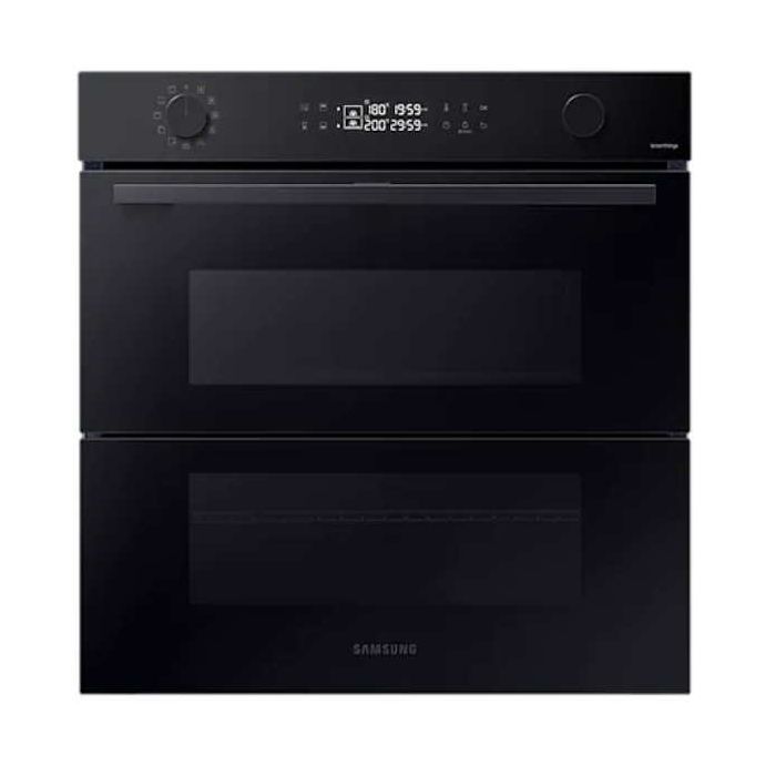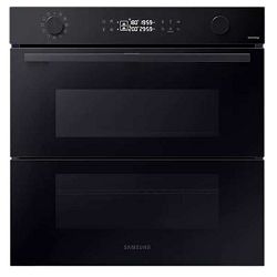 Boja pećnice: crna Staklo na vratima pećnice: četverostruko Sustav tihih vrata Tip zaslona: LED / bijeli Materijal unutrašnjosti: keramički emajl Gornji roštilj (ulaz/izlaz): 1600 / 1100 W Donji roštilj: 1100 W Metoda čišćenja: pirolitičko Čišćenje na paru Wi-Fi povezivanje Automatski programi: 40 / Dual Cook 10 Air Sous Vide Zaključavanje za sigurnost djece Vremensko mjerenje trajanja kuhanja Sat Odbrojavanje kraja Kapacitet: 76 l Dimenzije (V x Š x D): 595 x 596 x 570 mm Težina (neto): 43,3 kg Kvadratna posuda za pečenje: 2 Kvadratni žičani stalak: 1 Teleskopske vodilice: 1 razina Sonda za meso Razred energetske učinkovitosti: A+ Temp. rasponi pećnice (jednokratno): 30~250 (Grill 100~270) Temp. rasponi pećnice (gornji, donji): 40~250 °C Temp. rasponi pećnice (Dvojna): 40~250 °C WiFi Embedded SmartThings App Support