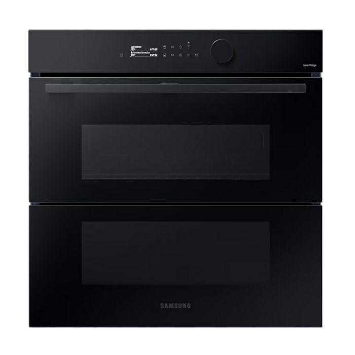 Boja pećnice: čisto crna Staklo na vratima pećnice: četverostruko Materijal unutrašnjosti: keramički emajl Metoda čišćenja: pirolitičko Čišćenje na paru Wi-Fi povezivanje Automatski programi: Single 40 / Dual Cook 10 Air Fry Air Sous Vide Zaključavanje za sigurnost djece Vremensko mjerenje trajanja kuhanja Sat Odbrojavanje kraja Kapacitet: 76 l Dimenzije (Š x V x D): 595 x 596 x 570 mm Težina (neto): 44,2 kg Kvadratna posuda za pečenje Kvadratni žičani stalak Teleskopse vodilice: 1 razina (pola) Air Fry pladanj Natural Steam pladanj Razred energetske učinkovitosti: A+ Temp. rasponi pećnice (gornji, donji): 40~250 °C Podrška za aplikaciju SmartThings