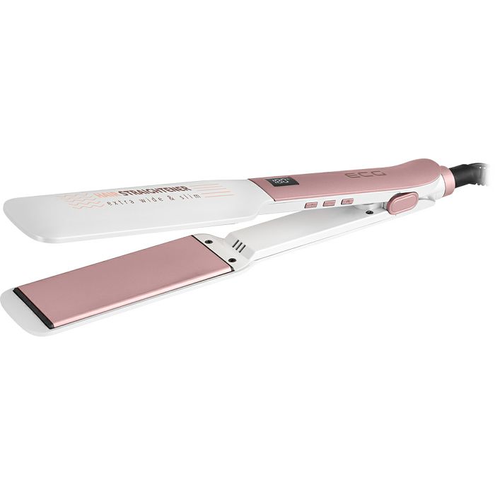 Prikladno za sve vrste kose Podešavanje temperature 120 – 210 °C prema vašem tipu, duljini i stilu kose Lako i brzo oblikovanje Ionizacija Brzo zagrijavanje na maksimalnu temperaturu Izuzetno široke površine za peglanje s keramičkom obradom Veličina površina za glačanje: 90 × 42 mm Zaštićen grijaći element LED indikator temperature Automatsko sigurnosno isključivanje nakon 60 minuta Kabel s okretnim krajem za 360° kako bi se spriječilo uvijanje i zapetljavanje Dužina napojnog kabela: 1,8 m Praktična putna torbica otporna na toplinu za jednostavno i sigurno skladištenje Nazivni napon: 100–240 V~, 50/60 Hz Nazivna snaga: 60–75 W