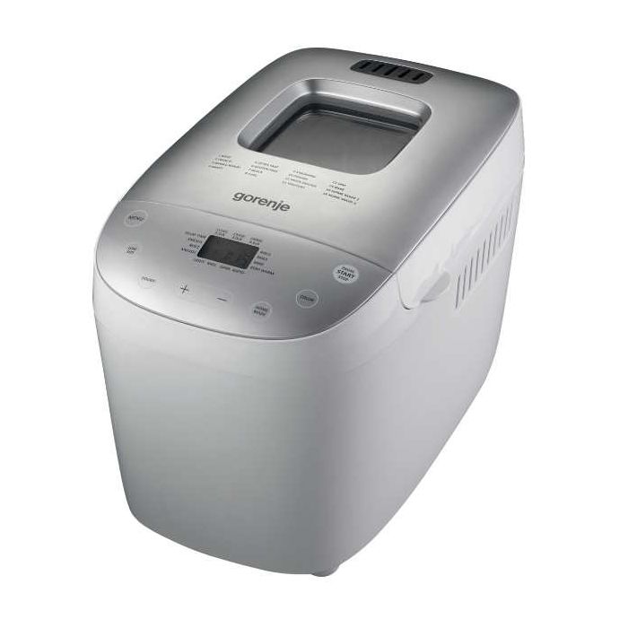 BM1600WG Pekač kruha Gorenje Odstranjiva posuda s neprijanjajućim slojem Broj posuda za pečenje kruha: 1 Broj špatula: 2 Veličina kruha: 3 Odabir veličine kruha (min-maks): 1.125 - 1.600 g Kontrolni prozorčić za nadzor procesa pečenja Broj prednamještenih programa: 16 Program za automatsku pripremu tijesta Zvučni signal za nadzor rada Funkcija držanja na toplom za svježi kruh, kada ga trebate Nastavljanje pečenja i nakon prekida el. energije Odgoda početka pečenja za mirisna jutarnja iznenađenja CrustChoice elektronska kontrola zapečenosti kruha Pregledni LED informativni zaslon Plavi indikator rada Program za dizanje tijesta Brzi program za brze rezultate Program za marmeladu za povećanu uporabljivost aparata Program za pripremu domaćeg jogurta Program za pečenje kruha bez glutena Dodatna mjerna posudica Dodatna dozirna žlica Gumirane nogice za stabilnost Automatsko isključivanje za dodatnu sigurnost Snaga grijača: 850 W Dužina priključnog kabela: 0 m Dimenzije aparata (ŠxVxD): 41 × 30,7 × 26,8 cm Dimenzije zapakiranog aparata (ŠxVxD): 41,3 × 31 × 27,1 cm Neto težina aparata: 7,2 kg Bruto težina aparata: 7,7 kg Priključna snaga: 850 w