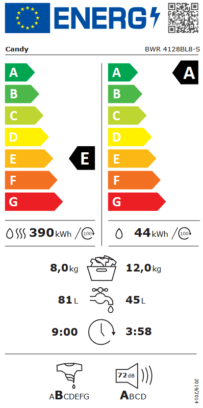 Razred energetske učinkovitosti za ciklus pranja (program ECO 40-60°C): A