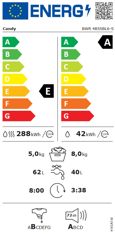 Razred energetske učinkovitosti za ciklus pranja i sušenja: E