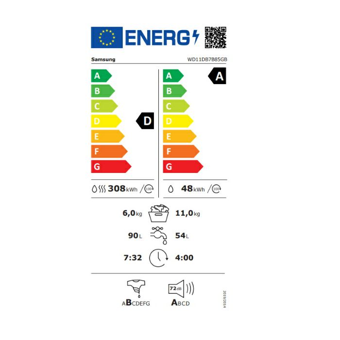WD7400D Kombinirana perilica i sušilica sa SmartThings AI Energy Mode i AI Ecobubble™ tehnologija 11kg, Kapacitet sušenja (kg) 6.0 kg, Al Wash, QuickDrive tehnologija, Al Control, Auto Dispense Tehnologija automatskog doziranja, Air Wash, higijensko čišćenje parom, Drum Clean +, StayClean ladica, SmartThings, Razred energetske učinkovitosti D, Razina buke (centrifugiranje) 72 dB, Brzina centrifugiranja 1400 o/min, WiFi