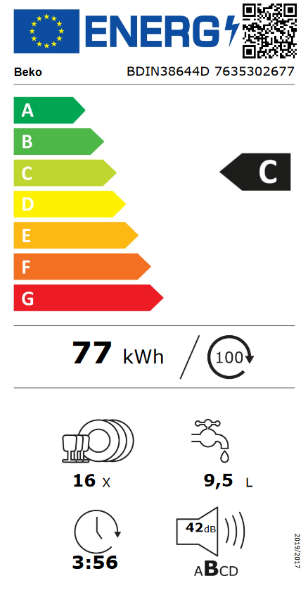 Broj programa: 8 -Auto -AquaFlex -Intensive 70 °C -Eco 50 °C -Osjetljivo 40 °C -Quick & Shine -Mini -Pretpranje Intenzivno pranje u donjoj košari DeepWash Odgoda početka rada do 24 h Senzor nečistoća Kada od nehrđajućeg čelika CornerIntense prskalica Automatsko otvaranje vrata LED rasvjeta Kapacitet: 16 kompleta Energetska klasa: C Potrošnja struje po ciklusu: 0.768 kWh Potrošnja vode po ciklusu: 9.5 l Razina buke: 42 dBA Broj razina raspršivanja: 3 Visina: 81.8 cm Širina: 59.8 cm Dubina: 55 cm Težina: 40 kg