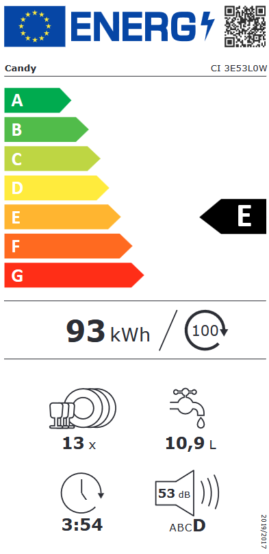 Ugradbena Broj kompleta: 13 Napredno upravljanje na daljinu i dodatni sadržaj (Wi-Fi + BLE) Sigurnosno zaustavljanje donje košare Sustav sušenja: kondenzator Šarke: standard Maksimalna temperatura dovodne vode (°C): 60 Broj programa: 5 Pola punjenja Pokazatelj završetka programa: zvučni signal Svjetlosni pokazatelj nedostatka soli Odgoda početka pranja: 3-6-9 h Standard Water Protection Trajanje programa ECO (hh:mm): 3.54 Podesive nožice Razred energetske učinkovitosti: E Razred energetske učinkovitosti: D Razina buke (dBA): 53 Potrošnja energije za ECO program na 100 ciklusa (kWh): 93 Potrošnja vode po ciklusu pranja (ECO program) (l): 10,9 Visina (mm): 850 Širina (mm): 598 Dubina (mm): 550 Neto težina (kg): 30,35