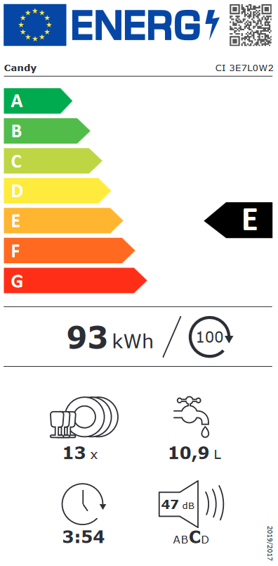 Ugradbena Broj kompleta: 13 Napredno upravljanje na daljinu i dodatni sadržaj (Wi-Fi + BLE) Sigurnosno zaustavljanje donje košare Sustav sušenja: kondenzator Šarke: standard Maksimalna temperatura dovodne vode (°C): 60 Broj programa: 5 Pola punjenja Pokazatelj završetka programa: zvučni signal Svjetlosni pokazatelj nedostatka soli Odgoda početka pranja: 3-6-9h Standard Water Protection Trajanje programa ECO (hh:mm): 03:54 Podesive nožice Razred energetske učinkovitosti: E Razina buke (dBA): 47 Potrošnja energije za ECO program na 100 ciklusa (kWh): 93 Potrošnja vode po ciklusu pranja (ECO program) (l): 10,9 Visina (mm): 818 Širina (mm): 597 Dubina (mm): 555 Neto težina (kg): 32,1