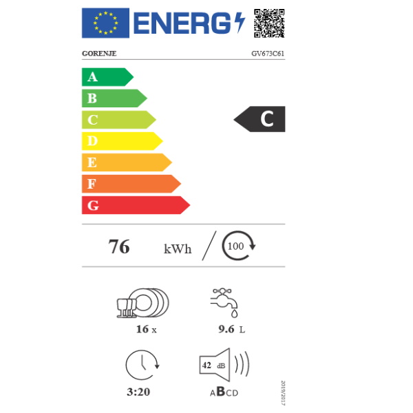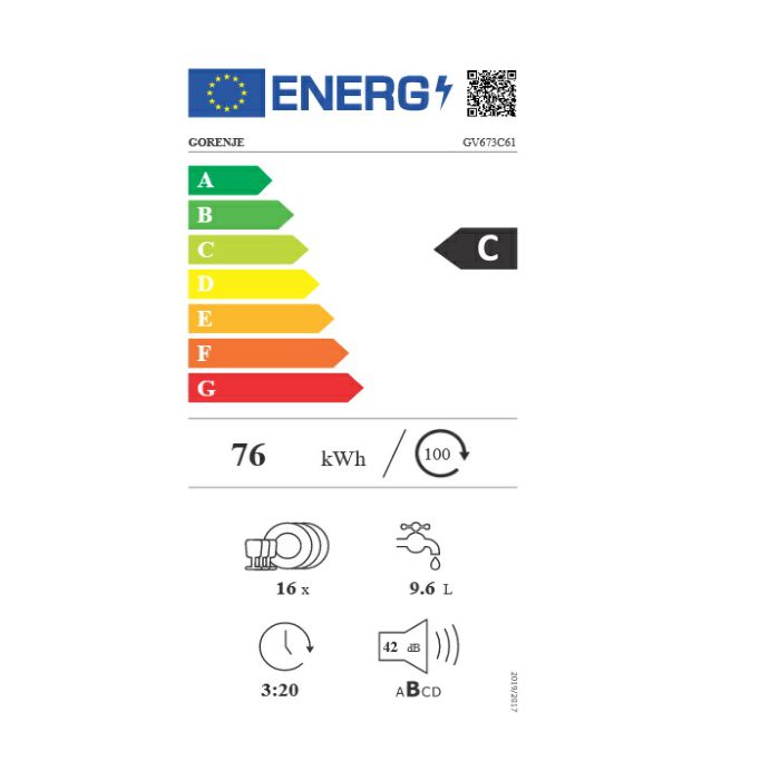 Učinak sušenja A Motor Inverterski motor PowerDrive Potrošnja vode na ciklus 9.6 l Maks. temperatura ulazne vode 70 °C Potrošnja energije - normalni program 0.76 kWh Potrošnja energije na 100 ciklusa 76 kWh Potrošnja el. energije u StandBy režimu 0.49 W Odogoda početka pranja (W) 3.99 Moguće upravljanje putem Wi-Fi mreže Da, integrirano Upravljanje Na dodir Indikator završetka pranja Svjetlosni-zvučni signal Odgoda početka pranja 0-24 h Optimizirana za tablete Da Programi za pranje posuđa Night wash, Pranje u trajanju od 1 h, Crystal glasses, Program Higijena, Eco program, Automatski program, Intenzivni program Mogućnost kreiranja vlastitih programa Memoriranje zadnjih postavki Temperature pranja (°C) 40/45/50/55/60/65/70 Trajanje Eco programa 200 min Kapacitet punjenja (broj servisa) 16 kom Sustav podešavanja visine gornje košare Click Clack sistem Klizna vrata Da Unutrašnje osvjetljene Da Statusno LED svjetlo Da Dodatne mogućnosti SpeedWash funkcija, TotalDry - automatsko otvaranje vrata, Selfcleaning programme IonTech Ne Senzori Senzor za nivo vode, Senzor čistoće vode Sustav za automatsko doziranje Ne Zona za intenzivno pranje Da Broj košara 3 Gornja košara 2 široka stalka za noževe, 4 držača za šalice, Razdjelni držači, Držači čaša za vino od TPE-a, Foldable pin rows, 1 sklopivi držač za čaše, Guide rails with ball bearings, Foldable/dividable left CupHolder, Desna sklopiva polica CupHolder za čaše, Lijeva sklopiva polica CupHolder za čaše, Ručka s inox logotipom, Ručka, Široka mreža Donja košara 4 sklopiva/vidljiva stražnja držača, Visoka košara s debljom prednjom i gornjom vodoravnom žicom, Foldable/dividable rear wine shelf, Sklopivi/djeljivi zadnji držači, Ručka s inox logotipom, Ručka, Tight mesh base Gornja košara (za pribor za jelo) Dividable and removable, S teleskopskim vodilicama, Ručka, Ručka s inox logotipom, Odstranjivi, No logotype Zaštita od izlijevanja Potpuni AquaStop Servisna dijagnostika Da Materijal kade Nehrđajući čelik Razina buke (max.) dB(A) 42 Stanje mirovanja 1.99 W Podešavanje visine 74 mm Širina proizvoda 598 mm Visina proizvoda 816 mm Dubina proizvoda 555 mm Širina veličine niše za ugradnju min. 600 mm Visina veličine niše za ugradnju min. 820 mm Dubina veličine niše za ugradnju min. 555 mm Širina zapakiranog proizvoda 640 mm Visina zapakiranog proizvoda 880 mm Dubina zapakiranog proizvoda 665 mm Bruto težina proizvoda 34.5 kg Neto težina proizvoda 32.5 kg Priključni napon 220-240 V