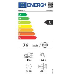 Energetski razred: C Energetski razred buke: B Linija: Advanced Line Materijal prskalica vode: plastika Učinak pranja: A Učinak sušenja: A Inverterski motor PowerDrive Potrošnja vode na ciklus: 9.6 l Maks. temperatura ulazne vode: 70 °C Potrošnja energije - normalni program: 0.76 kWh Moguće upravljanje putem Wi-Fi mreže Upravljanje: na dodir Indikator završetka pranja: svjetlosni-zvučni signal Odgoda početka pranja: 0-24 h Optimizirana za tablete Programi za pranje posuđa: -Night wash -Intenzivni program -Program Higijena -Automatski program -Crystal glasses -Eco program -Pranje u trajanju od 1 h Memoriranje zadnjih postavki Temperature pranja (°C): 40/45/50/55/60/65/70 Trajanje Eco programa: 200 min Kapacitet punjenja (broj servisa): 16 kom Sustav podešavanja visine gornje košare: MultiClack Klizna vrata Unutrašnje LED osvjetljene Statusno LED svjetlo Selfcleaning programme TotalDry - automatsko otvaranje vrata SpeedWash funkcija Senzor za nivo vode Senzor čistoće vode Zona za intenzivno pranje Broj košara: 3 Potpuni AquaStop Servisna dijagnostika Materijal kade: nehrđajući čelik Razina buke (max.) dB(A): 39 Podešavanje visine: 74 mm Širina proizvoda: 598 mm Visina proizvoda: 816 mm Dubina proizvoda: 555 mm Neto težina proizvoda: 33 kg