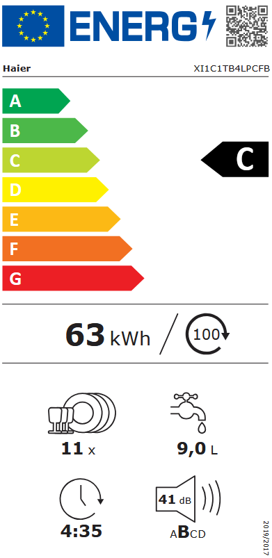 Razred energetske učinkovitosti: C Razred energetske učinkovitosti: B Razina buke (dBA): 41 Potrošnja energije za ECO program na 100 ciklusa (kWh): 63 Potrošnja vode po ciklusu pranja (ECO program) (L): 9 Podesive nožice Broj programa: 8 Automatski programi Pola punjenja Pokazatelj završetka programa: Da - zvučni signal Svjetlosni pokazatelj nedostatka soli Svjetlosni pokazatelj nedostatka sjajila Odgoda početka pranja: 1-23h Antibakterijski filter Power Wash / Perfect Rapid Zone - treća mlaznica Zaštita od preljevanja (standardna) Aquastop Napredno upravljanje na daljinu i dodatni sadržaj (Wi-Fi + BLUETOOTH®) Aplikacija za pametno upravljanje: hOn SMART DOOR - automatsko otvaranje vrata Treća košara Broj kompleta: 11 Ugradbena Visina (mm): 816 Širina (mm): 448 Dubina (mm): 559 Neto težina (kg): 37