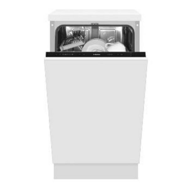 Hansa ZIM435H Ugradbena perilica posuđa širine 45 cm Klasa energetske efikasnosti: E Kapacitet: 9 Razina buke: 49 dB Potrošnja energije: 0.7 kWh Potrošnja vode: 9 l 5 programa pranja Intenzivni program - 70 °C Brzi program 30 min - 55°C Eco program - 45°C Program 60 min - 60 °C Self-cleaning 145 min - 70? Potpuno integrirana upravljačka ploča Funkcija pola punjenja Odgoda starta: 3/6/9 h Svjetlosni indikator nedostatka sretstva za sjaj Indikator nedostatka soli Košara za pribor za jelo Visina: 81.5 cm Širina: 44.8 cm Dubina: 55 cm