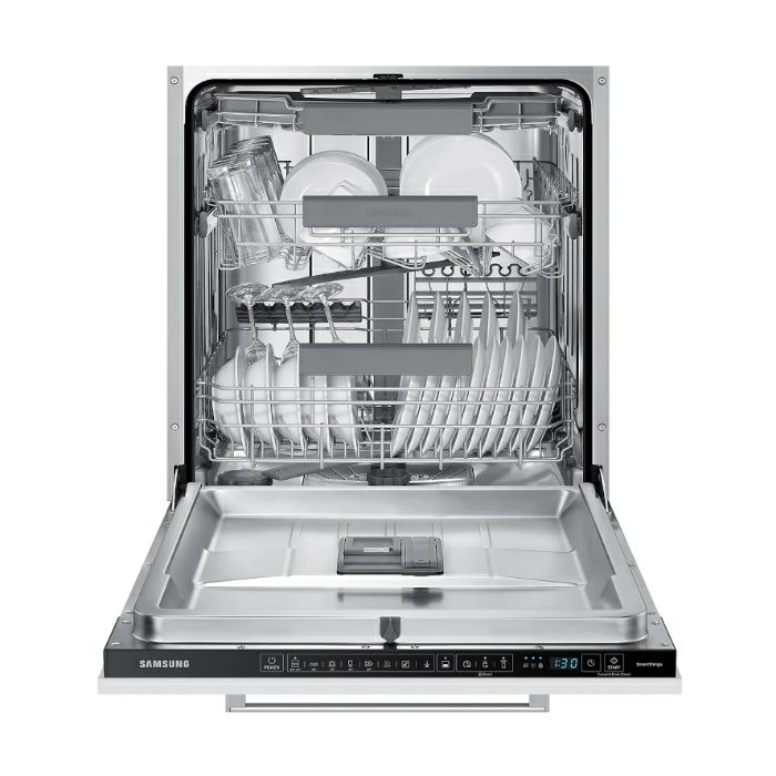 SAMSUNG ugradbena perilica posuđa s visokom energetskom učinkovitošću - B, Ball Bearing Rail System, Čisti temeljito uz manje napora i manju potrošnju energije, Jednostavno još praktičnija - lako pomicanje po vodilicama, Funkcija Flex Load, Automatsko Namještanje,Konvertibilna metalna treća košara, Podno informacijsko svjetlo,Pametniji način pranja Vašeg posuđa - Inteligentnije pranje posuđa,Jednostavan daljinski nadzor i upravljanje te mogućnost personalizacije iskustva pranja, Higijenska njega/ispiranje, Funkcija samočišćenja Self Clean, Izvanredno tiha - programom ExtraSilence, Speed Booster- skraćeno vrijeme pranja, Automatsko otvaranje kako bi otpustila paru radi bržeg sušenja, Aqua Stop, WiFi, Performanse: 14P/S, 8 programa, 5 opcija, 2 košare, Ladica za pribor za jelo, Razina buke: 43 dBA, 2 godine jamstva