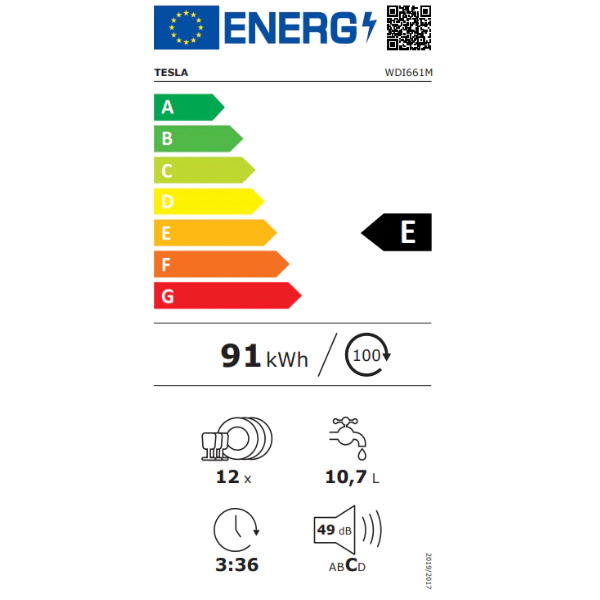 Kapacitet pranja: 12 kompleta Broj programa: 4 Energetski razred: E Razina buke: 49 dB Odgođeni početak rada Eko program Boja: srebrni upravljački panel Polovično punjenje Dimenzije (cm): 59.8 x 55 x 81.5