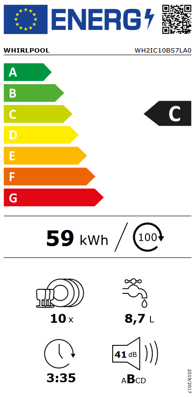 Podesive nožice: da - sve s prednje strane Ispiranje košare: donje ili gornje Ulazno crijevo duljine (cm): 155 Svjetlosni indikator sredstva za ispiranje Dužina električnog kabla (cm): 130 Prilagodljiva gornja košara Košara za pribor Max. broj standardnih kompleta posuđa: 10 Košara s ručkom Dužina izlaznog crijeva (cm): 150 Košara za pribor Svjetlosni indikator soli Potrošnja vode u litrama Eco ciklusa: 8.7 Maksimalna temperatura vode (°C): 60 Razred energetske učinkovitosti: C Učinkovitost čišćenja: A Učinkovitost sušenja: A Emisija buke (dB(A)): 41 Potrošnja energije/100 ciklusa Eco programa: 59 Broj programa: 9 Širina (cm): 44.8 Dubina (cm): 55.5 Dubina otvora (cm): 56.0 Visina (cm): 82.0