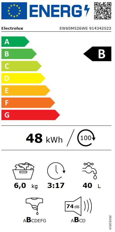 Electrolux EW6SM526WEDetalji uređaja Naša kompaktna perilica rublja PerfectCare 600 sa sustavom SensiCare prilagođava trajanje programa veličini punjenja trošeći manje energije i vode i sprječavajući predugo pranje rublja. Omogućava najekonomičnije cikluse i za najmanja punjenja. Njezin elegantan dizajn štedi prostor bez ugrožavanja kapaciteta ili kvalitete njege. Tkanine izgledaju kao nove dvostruko dulje Naš SensiCare sustav automatski prilagođava postavke programa količini rublja u bubnju. Pametni senzori smanjuju utrošeno vrijeme, potrošnju vode i energije, što znači da se i male količine rublja peru precizno. Za učinkovito čišćenje bez ikakvog rizika od habanja. Očistite omiljenu odjeću za samo 20 minuta S ovom će perilicom biti manje hitnih slučajeva s vašom garderobom. Mini program očistit će lagano uprljanu odjeću u samo 20 minuta. Rublje koje je spremno kad god VI to kažete Ne planirajte dan ovisno o vašem rublju. Pomoću funkcije odgode početka možete odgoditi početak sljedećeg ciklusa tako da će biti spreman kada ste i vi. Mala veličinom i velika što se tiče njege odjeće S kompaktnom perilicom-sušilicom marke Electrolux održavajte svoju odjeću tako da dulje fantastično izgleda. Njezin fleksibilan dizajn štedi prostor pristajući na mjesta koja su premala za uređaje standardnih veličina. Bez ugrožavanja kvalitete njege i dalje možete uživati u odličnim rezultatima pri čišćenju svoje omiljene odjeće. Specifikacije Program Svila, predviđen za pranje svile s laganim pranjem i posebno prilagođenim postupkom centrifuge Programi pranja: Eco 40-60, pamuk, sintetika, osjetljivo, Rapid 14Min, ispiranje, centrifuga/ odvodnja, Anti Allergy Vapour, Baby, svila, vuna, sport, odjeća korištena na otvorenom, Denim Odgoda starta Sigurnosno zaključavanje za zaštitu djece Nožice: 4 podesive nožice Sustav zaštite od poplave Performanse Maksimalni kapacitet (kg): 6.0 Wi-Fi povezivanje: ne Trajanje Eco ciklusa pranja 40-60, cijelo punjenje (EU 2017/1369) [sati:min.]: 3:25: 3:17 Volumen bubnja, l: 42 Ugradnja Visina, mm: 843 Širina, mm: 595 Dubina, mm: 378 Maksimalna dubina (mm): 411 Napon, V: 230 Duljina kabela, m: 1.4 Priključak napajanja, W: 1900 Energija Energetski razred: B Razina buke (dB): 74 EnergyConsE20: 0.484 Potrošnja energije u isključenom stanju (W): 0.50 Potrošnja el. energije u Stand-by (W): 0.5 Potrošnja vode po ciklusu (l): 40 Potrošnja el. energije na 100 ciklusa (kWh): 48 Trajanje Eco ciklusa pranja 40-60, pola punjenja (EU 2017/1369) [sati:min.]: 3:25: 2:35 Razina emisije buke (EU 2017/1369): B Frekvencija, Hz: 50 Drugo Broj proizvoda (PNC): 914 342 522 Woolmark: Woolmark Blue Vrsta bubnja: standardni Funkcija AutoDose: Ne Programi pranja: Eco 40-60, pamuk, sintetika, osjetljivo, Rapid 14Min, ispiranje, centrifuga/ odvodnja, Anti Allergy Vapour, Baby, svila, vuna, sport, odjeća korištena na otvorenom, Denim Dizajn: TC5 Boja: bijela Aqua Control: Ne Pretinac sredstva za pranje: kratki Postavljanje proizvoda: samostojeća Funkcije tipki: uključeno/isključeno, odabir temperature, odabir brzine centrifugiranja, predpranje, brzi program, odgođen početak rada, extra ispiranje, start/pauza