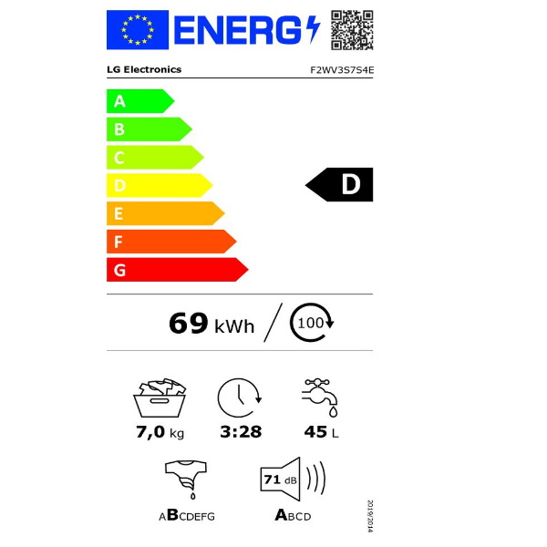LG perilica rublja F2WV3S7S4E 7kg slim Osnovne karakteristike: Kapacitet [kg]: 7 Broj okretaja [rpm]: 1200 Energetski razred (for NON EU): A+++ Broj programa: 14 Boja: Bijela Punjenje: Prednje Plitka: Da