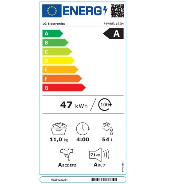 Kapacitet pranja (kg) 11Razred energetske učinkovitosti A