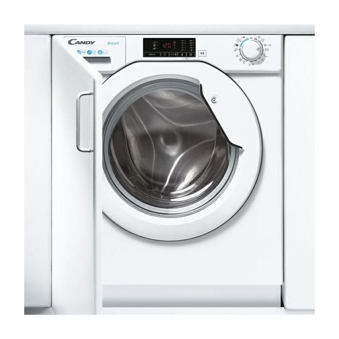 Candy CBW 27D1E Ugradbena perilica rublja Candy Maksimalan kapacitet pranja: 7 kg Broj okretaja centrifuge: 1200 okr/min Kapacitet bubnja: 58 l 2D display 17 programa - 5 brzih (14-30-44-59-59) Kg Detector funkcija Odgoda početka pranja do 24h 75 dBA emisija buke u fazi centrifugiranja (B klasa) D klasa energetske učinkovitosti B klasa učinkovitosti centrifugiranja Dimenzije (VxŠxD): 82 x 60 x 52,5 cm Težina: 66 kg Zemlja porijekla: Italija