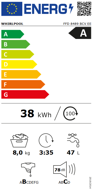 Whirlpool FFD 8489 BCV EE Whirlpool samostojeća perilica rublja s prednjim punjenjem: 8,0 kg