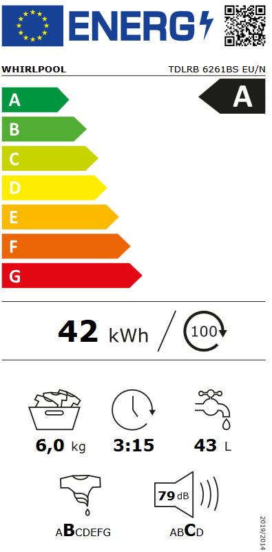 Whirlpool TDLRB 6261BS EU/N Whirlpool samostojeća perilica rublja s gornjim punjenjem: 6,0 kg