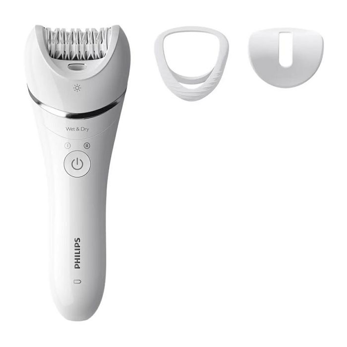 Glatka koža koja traje tjednima uz tehnologiju Double ActionTehnologija Double Action sinkronizira duge keramičke diskove za stabilno prianjanje i uklanjanje dlačica duljine tek 0,5 mm. Široka glava epilatora s 50% dužim diskovima uklanja više dlačica u jednom potezu*. Pripremite se za bezbrižne tjedne tjedne bez dlačica uz malo truda.Uočite i najtanje dlačice s tehnologijom Opti-lightUočite i najtanje dlačice s ugrađenom tehnologijom Opti-light, dovoljno blizu vašoj koži da uhvati preostale dlačice.S dodatnom kapicom za osjetljiva područjaZa jednostavno uklanjanje neželjenih dlačica uz dodatnu nježnost na licu, pazusima i bikini području upotrijebite kapicu za osjetljiva područja.Specifikacije:Dodatna oprema:Torbica OsnovnaČetka za čišćenje DaKapica za osjetljiva područja DaKapica za optimalni kontakt DaSnaga:Vrsta baterije Litij-ionskaPunjenje Brzo punjenje, 2 sata punjenjaVrijeme korištenja do 40 minutaTehničke specifikacije:Napon 15 V / 5,4 WBrzina izvlačenja dlačica 2 70 400 u minutiBrzina izvlačenja dlačica 1 64 000 u minutiBroj diskova 32Značajke:Postavke brzine 2 postavkeJednostavnost uporabe:Bežični DaDrška Drška u obliku slova SVlažno i suho korištenje DaOpti-light DaOdlične radne značajke:Epilacijski diskovi Keramički diskoviIzuzetno široka glava epilatora Da