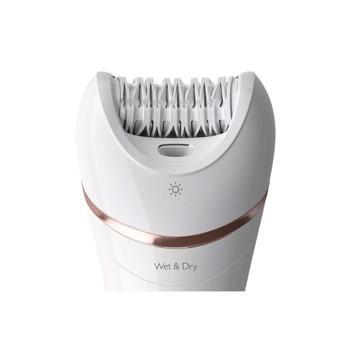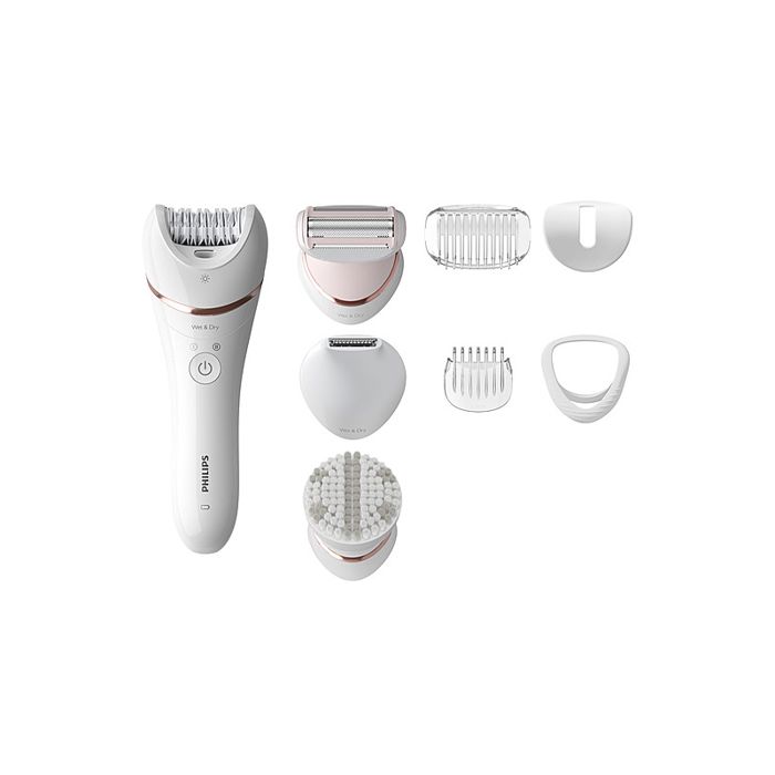 Moćna epilacija. Nježan na koži.Glatka koža do 4 tjedana.Epilator tvrtke Philips pruža moćnu, no nježnu epilaciju za glatkoću obje potkoljenice u samo 10 minuta.Uz samu epilaciju, komplet vam omogućuje uživanje u dodatnim prednostima.Glava za brijanje i češalj za podrezivanje za glatko brijanje.Glava za podrezivanje i češalj za bikini zonu.Kapica za osjetljiva područja za uklanjanje neželjenih dlačica. Kapica za optimalni kontakt pruža maksimalnu udobnost.Četka za piling tijela uklanja mrtve stanice kožeErgonomska drška u obliku slova S.Bežična mokra i suha uporaba – u kadi ili pod tušem.Zahvaljujući jedinstvenom svjetlu, nećete propustiti tanke dlačiceUključena je torbica koja omogućuje spremanje svih dijelova na jednom mjestu.