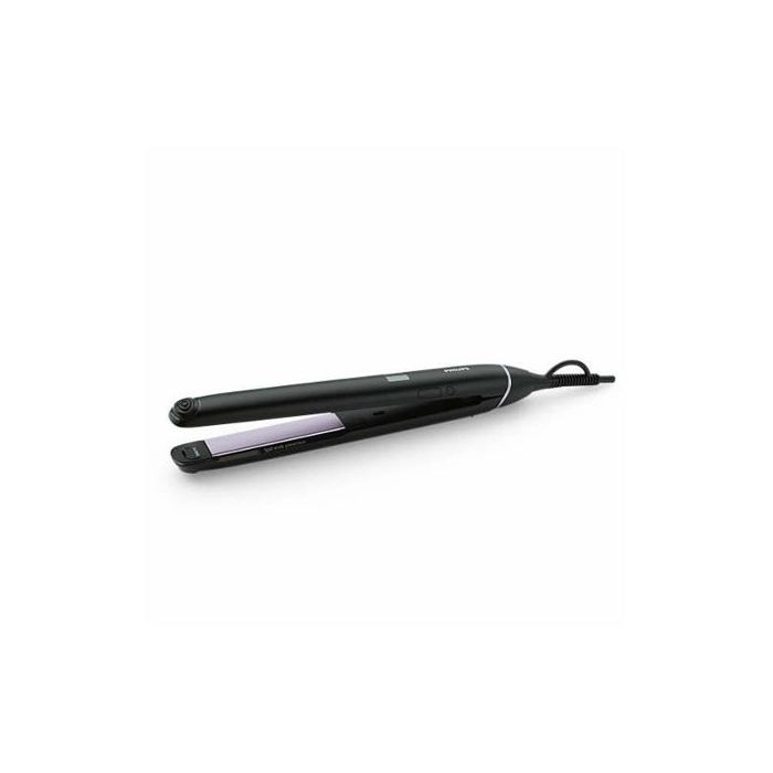 Opis proizvoda Pegla za kosu Philips BHS677/00 Pegla za kosu Philips BHS677/00 ima digitalni zaslon s 14 postavki temperature do 230 °C pruža potpunu kontrolu za prilagodbu temperature vašem tipu kose u svrhu sprječavanja oštećenja. Vrhunski Sublime Ends naš je prvi aparat za ravnanje kose dizajniran za zaštitu krhkih vrhova. Zahvaljujući našoj vrhunskoj tehnologiji SplitStop i pomičnim pločama možete uživati u predivno oblikovanoj kosi zdravih vrhova! Duljina kabela: 1,8 m Vrijeme zagrijavanja: 15 s Vrsta grijača: Grijač odličnih radnih značajki Maksimalna temperatura: 230 °C Veličina ploče: 25 × 105 mm Napon: 110–240 V