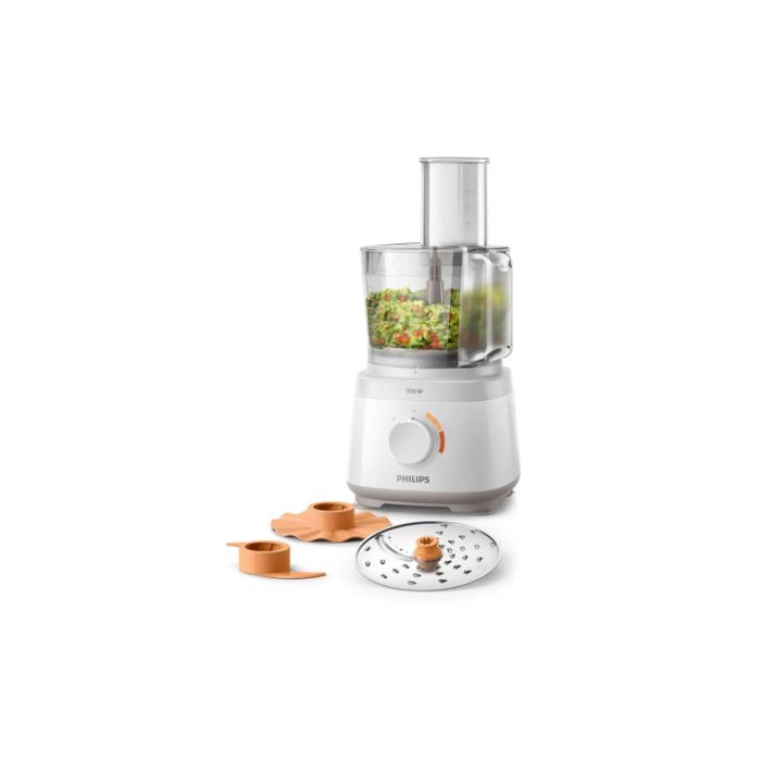 Snažni motor od 700 W olakšava pripremu raznih sastojaka, od tijesta za kruh do tvrdog povrća, sira i čokolade. Rezanje i struganje također je brzo i jednostavno. Brza priprema s velikim kanalom za punjenje, pogodan za veće prethodno izrezane komade. Brza i jednostavna ugradnja svih dijelova. Svi nastavci mogu se lako oprati u gornjoj ladici perilice posuđa. Praktično sve u jednom – za gnječenje, emulgiranje, struganje, rezanje: Više od 16 funkcija i visokokvalitetni višenamjenski dodaci za sjeckanje, naprezanje i brušenje S oštricom ili rezanje i struganje 2-u-1 reznim diskom. Indikator boje za brzinu i pribor za jednostavna podešavanja: Brzinom 1 umutite vrhnje i jaja te napravite kolače i kruh. Brzina 2 idealan je za sjeckanje luka, mljevenje mesa, pripremu smoothija itd. Dvostrani rezni disk od nehrđajućeg čelika 2 u 1 za struganje i rezanje: Ergonomski obostrani disk olakšava rezanje s jedne i struganje s druge strane.