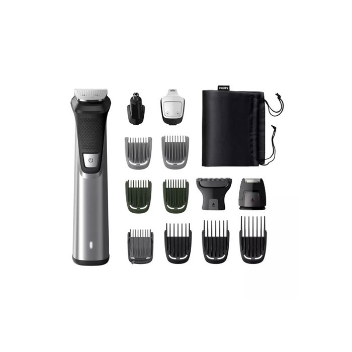 Usavršite svoj osobni stil uz Philipsov najprecizniji i najsvestraniji trimer. 14 vrhunskih nastavaka omogućit će vam izradu vlastitog jedinstvenog stila, od glave do pete. Uživajte u maksimalnoj preciznosti uz DualCut oštrice i dodatnoj kontroli uz gumenu dršku koja ne kliže. Šišač za bradu i kosu Philips MG7745/15 praktično podrezuje i oblikuje dlačice na licu, tijelu te kosu. Koristite metalni trimer s tehnologijom DualCut bez češlja za postizanje čistih, oštrih linija oko brade, vrata i kose ili za podrezivanje dlačica na tijelu na najmanju duljinu. 2 češlja za kratku bradu (1, 2 mm), 1 prilagodljivi češalj za dužu bradu (3 – 7 mm), 3 češlja za kosu (9, 12, 16 mm) i 2 češlja za tijelo (3,5 mm). Vrlo kvalitetna gumena drška za superiornu udobnost i kontrolu tijekom podrezivanja. Također uklonite neželjene dlačice iz nosa i ušiju na jednostavan i ugodan način pomoću trimera za dlačice.