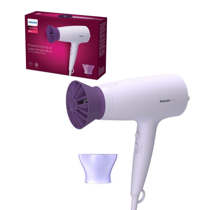 Snažno sušenje s nižom temperaturom.2100 WNastavak ThermoProtect6 postavki topline i brzineNastavak ThermoProtect jedinstvenog dizajna snažno miješa topao i hladan zrak za svakodnevno njegovanje. Premda smanjuje temperaturu za 15°C, brzo suši kosu.Jednostavno odaberite kombinaciju topline i brzine koja najbolje odgovara vašoj kosi i frizuri. Šest različitih postavki osigurava preciznu kontrolu za prilagođeno oblikovanje.Tanka mlaznica precizno usmjerava zrak za brze popravke i savršene malene detalje u vašoj frizuri.Postavka hladnog zraka daje mlaz hladnog zraka za dovršetak i zadržavanje frizure.