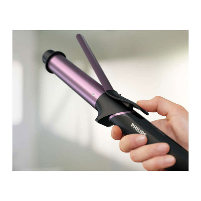 Do 200 °C za savršene rezultateVelika cijev od 32 mm za meke kovrčeManje ispucalih vrhovaTehnologija SplitStop za najbolje sprječavanje ispucalih vrhovaDodatak keratina za bolju njegu8 digitalnih postavki temperature za potpunu kontrolu30 % više mjesta za oblikovanje na cijevi za dugačku ili gustu kosuHladni vrh za jednostavniju i sigurniju upotrebuSigurnosno postolje za lakoću uporabeKratko vrijeme zagrijavanja, aparat je spreman za uporabu u roku od 60 sekundiFunkcija zaključavanja gumba kako bi se spriječilo slučajno pritiskanjeSavitljivi kabel sprječava zaplitanje kabelaAutomatsko isključivanje za sigurnu uporabuTehnički podaciVeličina cijevi: 32 mmObloga cijevi: Keramička obloga s keratinomRaspon temperatura: 130 °C – 200 °CBroj postavki topline: 8Vrsta kontrole temperature: LCDVrijeme zagrijavanja: 60 sDuljina kabela: 1,8 mNapon: Diljem svijeta VZnačajkeAutomatsko isključivanje: nakon 60 minZaključavanje tipkiPostolje za odlaganjeSavitljivi kabel