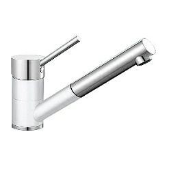 Pipa Blanco Antas-S Silgranit look bijela/krom VT 515350 Pravocrtni dizajn u kompaktnom obliku Prikladna za male i kompaktne sudopere Tuš na izvlačenje Keramičke brtve Savitljive priklučne cijevi