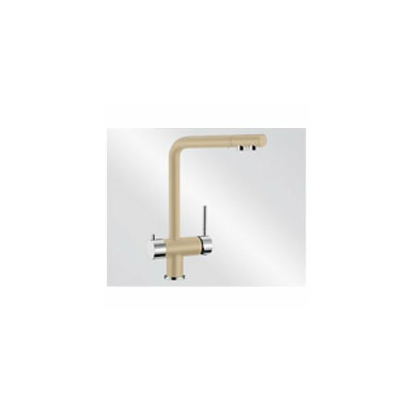 Pipa Blanco BlancoFontas silgranit/krom VT 518508 Krom i SILGRANIT-Look, dvobojni 2 u 1: obična voda i pročišćena voda direktno iz jedne pipe Visoka pipa - dvostruka funkcionalnost Jednostavna za korištenje zahvaljujući dodatnoj ručki za vodu za piće Nema mješanja vode za piće i obične vode Visoka pipa omogućava brzo točenje bez prskanja Pomična slavina Za pipu je potrebno izbušiti otvor promjera 35 mm Keramičke brtve Tri savitljive priključne cijevi, duljine 450 mm s maticom Patentiran regulator mlaza, znatno smanjuje skupljanje kamenca Ploča za stabilnost i čvrstoću pipe Boja šampanjca/krom Visoki tlak 518 508