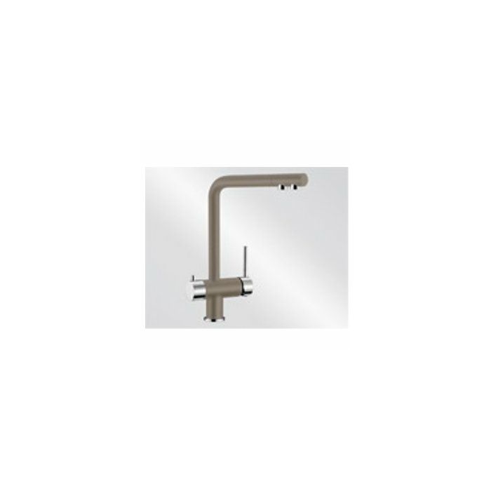 Pipa Blanco BlancoFontas silgranit/krom VT 518512 Krom i SILGRANIT-Look, dvobojni 2 u 1: obična voda i pročišćena voda direktno iz jedne pipe Visoka pipa - dvostruka funkcionalnost Jednostavna za korištenje zahvaljujući dodatnoj ručki za vodu za piće Nema mješanja vode za piće i obične vode Visoka pipa omogućava brzo točenje bez prskanja Pomična slavina Za pipu je potrebno izbušiti otvor promjera 35 mm Keramičke brtve Tri savitljive priključne cijevi, duljine 450 mm s maticom Patentiran regulator mlaza, znatno smanjuje skupljanje kamenca Ploča za stabilnost i čvrstoću pipe Tartufo/krom Visoki tlak 518 512