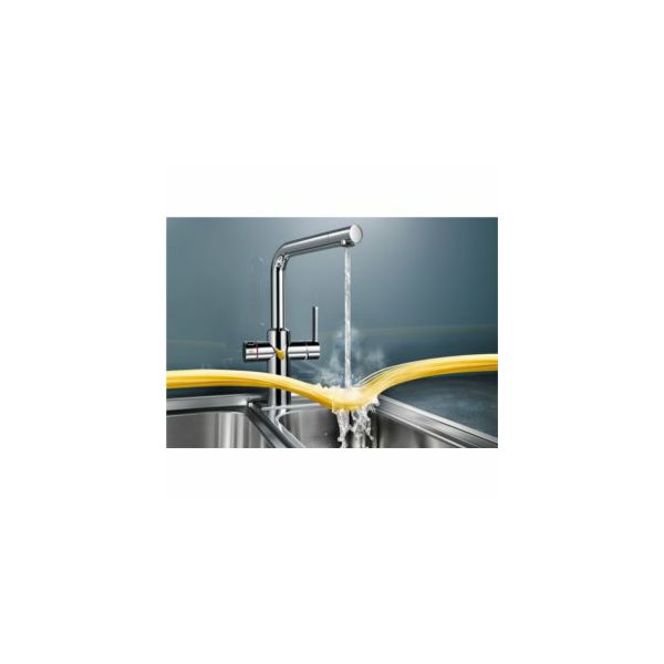 Pipa Blanco BlancoHot krom VT 519064 svestrani BLANCO HOT - vruća voda sve od prve kapi Praktična 2 u 1 pipa s ručkicom za toplu - hladnu vodu s desne strane i okretnom ručkicom za vruću vodu s lijeve strane Točenje vruće vode bez pare i prskanja Kontrola vruće vode s HotLock zaštitom za djecu Higijenski: s patentiranim "anti-drip" sistemom koji sprečava nakupljanje bakterija Niskotlačni bojler od 5 litara koji štedi prostor za ugradnju ispod sudopera Temperatura vode prema želji počevši već od 65 °C Jednostavna ugradnja Slavina pomična za 180° Za pipu je potrebno izbušiti otvor promjera 35 mm Keramičke brtve Savitljive priključne cijevi duljine 450 mm, s maticom Mješalica hladno/toplo u visokotlačnom (VT) sistemu, vruća voda u niskotlačnom (NT) sistemu Izoliran vrat pipe - CoolGrip - zaštita od opeklina Ploča za stabilnost i čvrstoću pipe Niskotlačni, niskomontažni bojler za vruću vodu Novorazvijeni elektronski sustav u bojleru sadrži samopodesivi mjerač pritiska Temperatura vruće vode prema želji (od 65° do kipuće vruće) Napon 230 V 50/60 Hz Nominalna snaga 2,0 kW Volumen bojlera: 5 litara Uključen pribor za montažu na zid