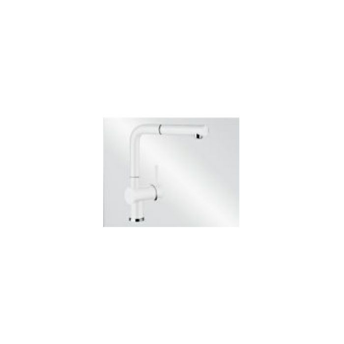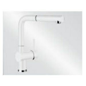 Blanco Linus-S 516710 Keramika-look Visokotlačna Minimalistički dizajn Tuš na izvlačenje Ručka se može pozicionirati na lijevu ili desnu stranu te prema naprijed Savršena usklađenost sa Blanco keramičkim sudoperima Keramičke brtve Crijevo tuša sa metalnom oblogom Savitljive priključne cijevi Patentiran regulator mlaza Boja: kristalno bijela