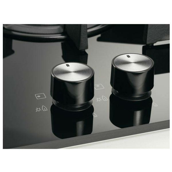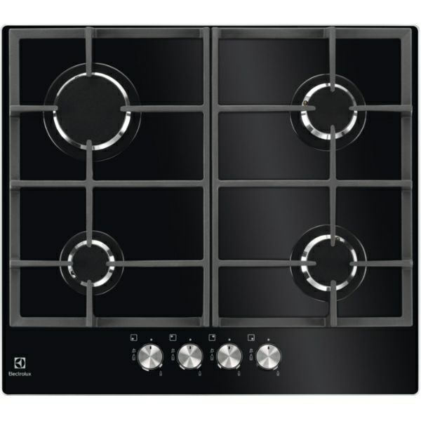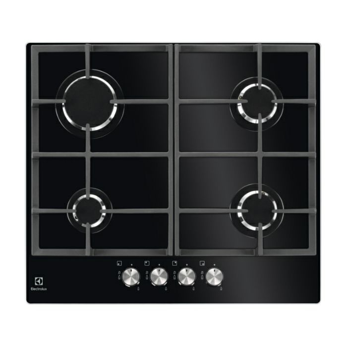 KGG6426K Plinska ploča Electrolux Vrsta ploče: plinski plamenici na staklu Sigurnosni plinski termoelementi: plin se prekida na izvoru ako se plamen ugasi Elektronsko paljenje Nosači posuđa od lijevanog željeza Plamenici: - 1000W/65mm - 3000W/100mm - 2000W/80mm - 2000W/80mm Dimenzije otvora za ugradnju: 590x520 Dimenzije ploče: 40x560x480 Dužina kabela: 1.1 m