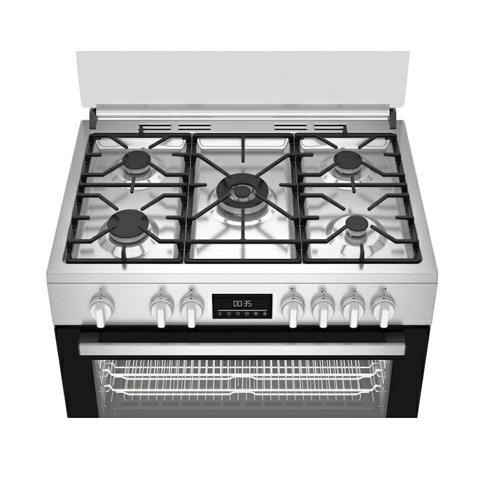Broj funkcija pećnice: 9 Volumen pećnice: 111 l Klasa energetske učinkovitosti: A+ Boja: inox Konfiguracija plamenika: 4 plinska plamenika + 1 wok Odmrzavanje Tradicionalno kuhanje Pizza program Ventilator Integrirano elektroničko paljenje plamenika Katalitički zidovi pećnice Uklonjivo staklo vrata
