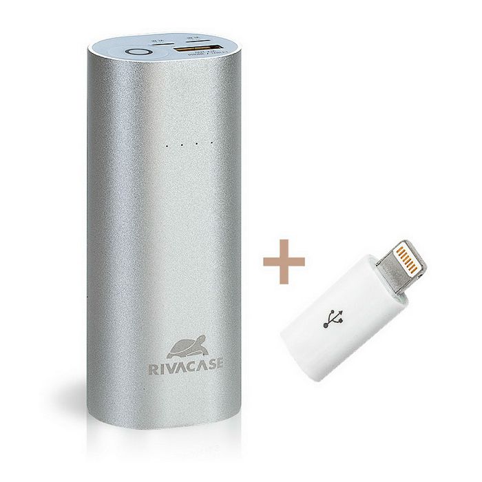 Prijenosna baterija RivaPower VA1005 (5000mAh) Silver, kabel microUSB + adapter microUSB->Lightning, metalno kućište