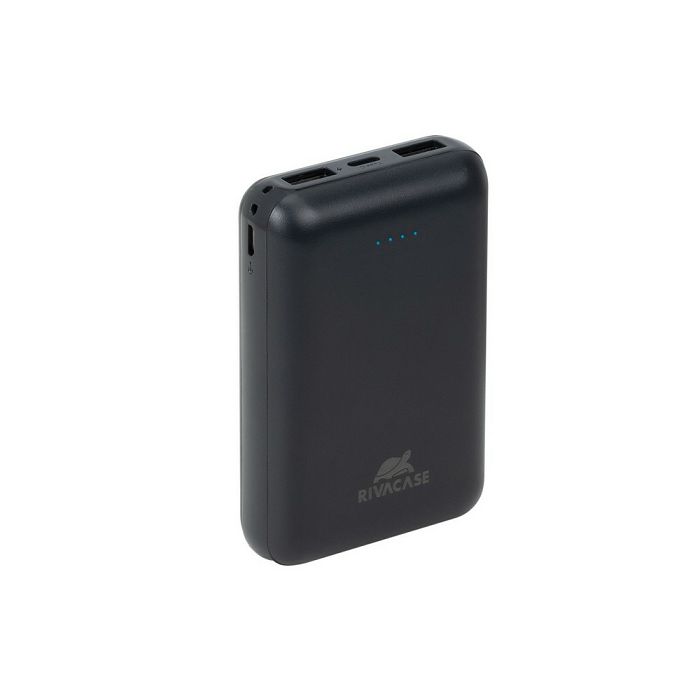 VA2412 BlackPortable rechargeable batteryProduct Features:• 10000 mAh rechargeable Li-Pol battery.• Protection from over-charging, over-discharging, overload and short circuit.• Automatic turn on/off. Just plug your device(s) into RIVACASE battery output socket(s) and the charging will start.• To check the battery status, press the button on the battery body. 4 LED indicators will show the level of charge.• Smartphone charging - up to 2,5 times. (depends on a smartphone battery capacity).• Cable included.KEY FEATURE:• Compact size• Charge 3 devices simultaneously• USB-C output