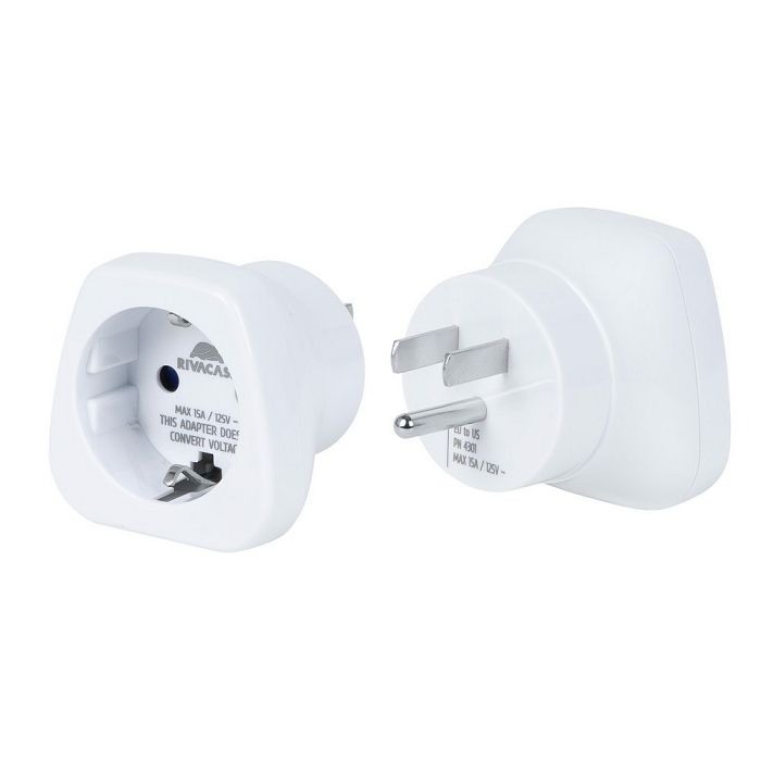 PS4301 W00For Europeans visiting the US or CanadaSuitable for equipment with earthed & unearthed plugs (2- & 3-pole)Receptacles for: 3-pole Europe (Schuko) & 2-pole EuroPlug type: USA 3-pin, Earthed (Grounded)Voltage: 100 V – 250 VMax. load: 15 ADoes not convert voltage