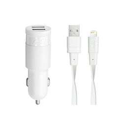 Auto punjač RivaPower VA4225 WD2 White 3,4A / 2xUSB + kabel MFi Lightning 1.2m